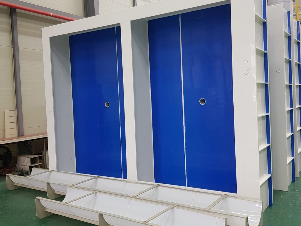 서울의 노량진 수산시장이나 부산의 민락동 수산시장 등의 활어도매상에 납품하는 대형수조는 일반 콘크리트 수조에